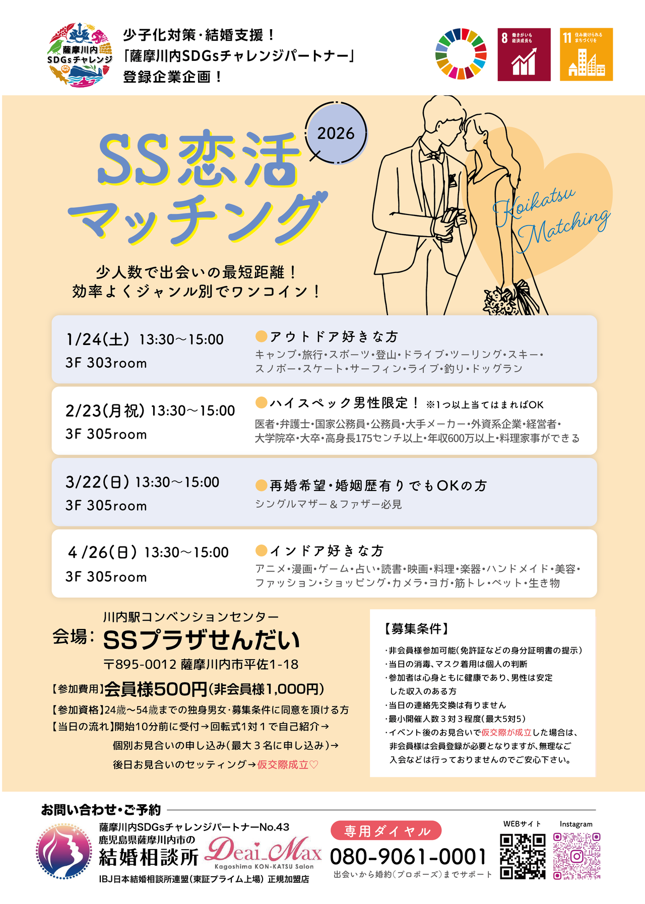 経営者の皆様の福利厚生を応援します!従業員とそのご家族の幸せを考えられる企業様に向けて、社内の福利厚生の一環として出逢い・婚活・結婚支援の法人会員提携制度を設けております。また薩摩川内SDGsチャレンジパートナー登録企業としても、少子化対策・結婚支援も発信していきます。